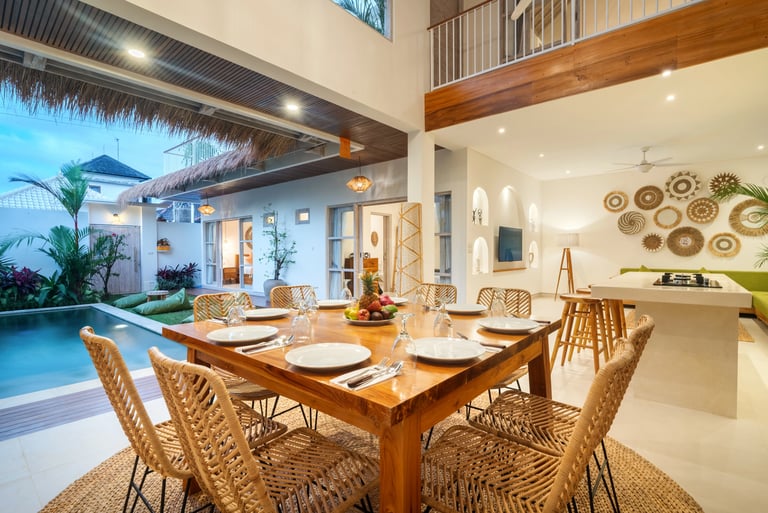 Nichée au cœur de Kerobokan, cette charmante villa balinaise offre une retraite calme et intime. Dès que vous franchissez le seuil, vous êtes transporté dans un havre de paix tropical, loin de l'agitation de la vie quotidienne.